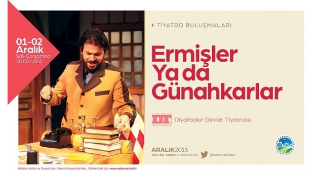 Sakarya Büyükşehir Belediyesi Aralık Kültür Sanat Etkinlikleri içerisinde yer alan Diyarbakır Devlet Tiyatrosu’nun sahneleyeceği ‘Ermişler Ya da Günahkarlar’ isimli oyunun biletleri satışa çıktı. Yapılan açıklamada, 1 Aralık Salı ve 2 Aralık Çarşamba günleri AFA’da gerçekleştirilecek gösterimlerin saat 20.00’da başlayacağı belirtilirken, “Etkinlik için biletler Kültür ve Sosyal İşler Daire Başkanlığı’ndan temin edilebilecektir. E-biletlere ise Büyükşehir Belediyesi kurumsal internet sayfasından (www.sakarya.bel.tr) ulaşılabilecektir. Tüm tiyatro severler gösterimlere davetlidir” denildi.