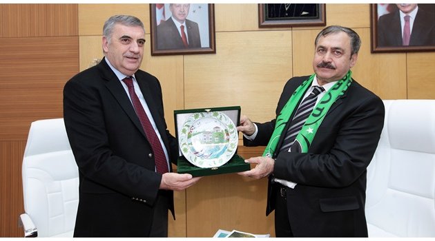 Bir dizi programa katılmak üzere Sakarya’ya gelen Orman ve Su İşleri Bakanı Prof. Dr. Veysel Eroğlu, Sakarya Büyükşehir Belediyesi’ni ziyaret etti. Başkanlık makamında gerçekleşen ziyarette Vali Hüseyin Avni Coş, AK Parti Sakarya Milletvekilleri Şaban Dişli, Ali İhsan Yavuz ve Recep Uncuoğlu, ilçe belediye başkanları, bakanlık bürokratları da yer aldı.Tüm Cazibesiyle Şehre UlaşacakBakan Eroğlu’nu Sakarya’da ağırlamaktan duydukları memnuniyeti dile getiren Başkan Toçoğlu, “Sayın Bakanımıza her zaman Sakarya’nın yanında oldukları için teşekkür ediyoruz. Büyükşehir Belediyemizi ilgilendiren en önemli yatırımlardan biri de Ballıkaya Baraj Projesi’dir. Sakaryalı hemşerilerimiz tozlu raflarda kalmış bu projenin sizlerin destekleri ile hayata geçirileceğinin farkındalar. Ballıkaya Projesi’nin isale hatları ile ilgili olan kısmı çok önemli. Bu hatların barajın kendisinden daha fazla maliyetli olduğu kesindi. Bunun dışında aylık 2,5 milyon lira enerji için para ödüyoruz. Baraj projesinden cazibesiyle yararlanacağımız için elektrik enerjisinde büyük bir tasarruf sağlanmış olacak. Bu iki konuya vermiş olduğunuz destek için şükranlarımızı sunuyoruz” diye konuştu.Vizyon Sahibi Bir BelediyecilikBakan Veysel Eroğlu, “Sözlerimin başında Büyükşehir Belediye Başkanımız Zeki Toçoğlu’na teşekkür etmek istiyorum. Vizyon sahibi bir yönetici olduğunu ifade etmek istiyorum. Bizlere, ‘Hidroelektrik Santrali inşa ederek, elektrik üreteceğiz’ dediklerinde gerçekten çok şaşırmıştım. O dönemde belediyelere böylesi imkanlar verilmiyordu. HES için temeli birlikte atmıştık, bölgede yine çok güzel bir mesire alanı inşa edildi. Bu anlamda zoru başardılar. Kendilerini bir kez daha tebrik ediyoruz. Başarılarının devamını diliyoruz” diye konuştu.Bakan Eroğlu’ndan 2 MüjdeEroğlu, “Ballıkaya Sakarya için elzem bir konu. Yeni bir su kaynağına ihtiyaç zaruret halini almıştı. Sapanca Gölü’ne bağlı kalamazdık. Yaşanabilecek kuraklıklarda tüm cazibesiyle Sakarya’ya su verecek olan bir proje. Tüm zorluklara rağmen baraj bitiyor. İnşallah bu sene barajı bitireceğiz. Barajın bitmesi yalnızca yeterli değil. Sayın Başkanımızın da ifade ettikleri gibi projede isale hattı ve içmesuyu arıtma tesisi de yer alıyor. Büyükşehir’e yük olmaması adına Bakanlık eliyle hat ve tesisi inşa edeceğiz. Projeleri bitmek üzere. İnşallah bu yıl içerisinde ihaleye çıkacağız. Hızla eksiklikleri gidereceğiz. Proje üzerindeki son detayları bizzat ben de inceleyeceğim. Bu konu acil. Gerekli takipleri birlikte yapacağız. Diğer kurumlar ile de bu projenin hayata geçirilmesi için iletişim halinde olacağız” ifadelerini kullandı. Ziyaretin devamında Başkan Toçoğlu, Bakan Eroğlu’na teşekkür ederek, günün anısına üzerinde Sakarya’yı temsil eden motiflerin yer aldığı minyatür çalışmasını hediye etti.