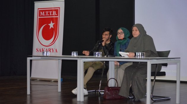 Milli Türk Talebe Birliği Sakarya İl Başkanlığınca düzenlenen programlarda konuşmacı olan Rabia Meydanının sembol ismi Esma’nın annesi Sena el-Biltaci, “Bir şehid annesi olarak sizlere baktığımda kızım Esma’yı aranızdaymış gibi hissediyorum.” diye konuştu.
