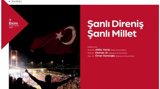 Sakarya Büyükşehir Belediyesi Kültür ve Sosyal İşler Dairesi Başkanlığı tarafından düzenlenen kültür sanat etkinliklerinde yeni sezon başlıyor. Panellerden konferanslara, tiyatro buluşmalarından konserlere kadar birçok programı kültür sanat dostlarının beğenisine sunan etkinlik takvimi kapsamında 7 Ekim Cuma günü ‘Şanlı Millet Şanlı Direniş’ konulu konferans gerçekleştirilecek. AKM’de düzenlenecek programa Prof. Dr. Atilla Yayla, Prof Dr. Hamza Al ve Doç. Dr. Ömer Karaoğlu konuşmacı olarak katılacak. Kültür ve Sosyal İşler Dairesi Başkanlığı’ndan yapılan açıklamada, “Ekim Kültür Sanat Etkinliklerinin ilk programı olan ‘Şanlı Millet Şanlı Direniş’ konulu konferansa tüm kültür sanat dostları davetlidir” denildi.