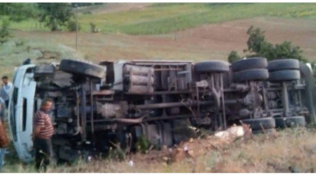 Geyve Karacaören Mahallesinde meydana gelen kazada, freni boşaldığı tahmin edilen kamyon şarampole uçtu.