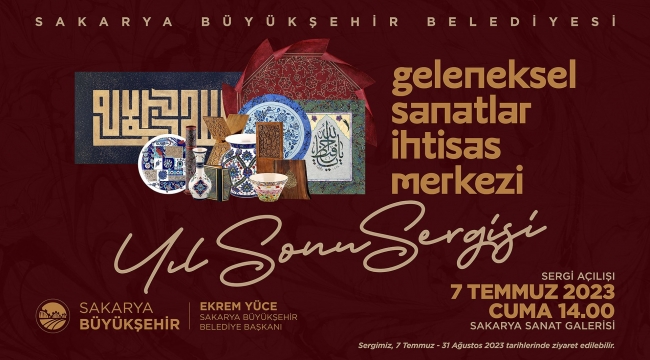 Büyükşehir Belediyesi Geleneksel Sanatlar İhtisas Merkezi’nde yılsonu sergisi heyecanı yaşanacak. 7 Temmuz Cuma günü Sakarya Sanat Galerisi’nde düzenlenecek törenle açılacak olan sergide 10 branşta toplam 148 eser beğeniye sunulacak. Sergi 31 Ağustos tarihine kadar açık olacak.