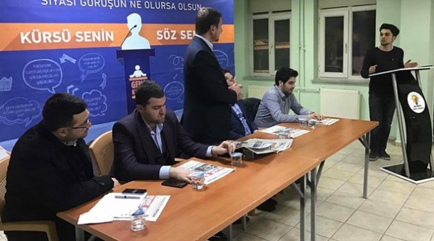 Yeni Anayasa ve Cumhurbaşkanlığı Sisteminin konuşulduğu "Genç Kürsü" programına katılan genç katılımcıların sorularını AK Parti sakarya İl Gençlik Kolları Başkanı Yusuf Demir, Başkan Yardımcıları, Yönetim Kurulu ve İlçe Gençlik Kolları Başkanı Hakan Ihlamur cevapladı. Programa Pamukova İlçe Başkanı Fatih Akın ve Pamukova Kadın Kolları Başkanı Sibel Bilal’de katıldı.Açılış konuşmasını yapan AK Parti Pamukova İlçe Gençlik Kolları Başkanı Hakan Ihlamur; "Başkanımız Yusuf Demir'e ve ekibine bugün bizlerle birlikte olduğu için ilçe teşkilatımız adına teşekkür ediyorum." dedi. Başkan Ihlamur Genç Kürsü Programımız ile 16 Nisan da gerçekleşecek olan Referandum için mahalle mahalle gençler ile bir araya gelip soruları cevaplayacak ve süreç hakkın da bilgilendirme de bulunacağız” diyerek sözü fazla uzatmadan İl Gençlik Kolları Başkanımıza bırakmak istiyorum" dedi.Kafanıza takılan sorulara cevap olabilmek için buradayız