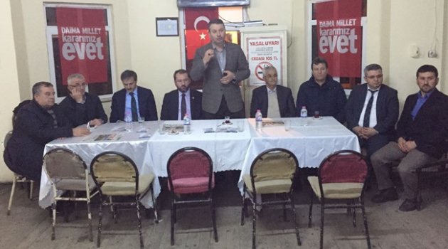 AK Parti sakarya Milletvekili Recep Uncuoğlu,Serdivan Belediye Başkanı Yusuf Alemdarve AK Parti Serdivan İlçe Başkanı Osman Çelik’le birlikte Çubuklu’ya misafir oldu.Kazanımlarımıza Daha Fazla Kazanım KatacakReferandum süreci ile ilgili plan ve programları tamamladıklarını Serdivan’ı karış karış dolaştıklarını belirten AK Parti Serdivan İlçe Başkanı Osman Çelik, Cumhurbaşkanlığı sisteminin Türkiye’nin önünü açacak bir sistem olduğunu ifade ederek “Türkiye bu sistemle kazanımlarına daha fazla kazanım katacaktır.” dedi.Güçlü Bir EVET’le Oyunları BozacağızTürklerin Anadolu’ya girişinden başlayıp Selçuklu ve Osmanlı’dan günümüze kadar milletçe çetin mücadeleler verildiğini ve verilmeye de devam edildiğini belirten Serdivan Belediye Başkanı Yusuf Alemdar, Türkiye üzerinde oynanan oyunları, güçlü bir EVET’le 16 Nisan günü hep birlikte bozacaklarını söyledi.Bu coğrafyada yaşamanın zor olduğunu ifade eden Alemdar, “Bu coğrafya tarih boyunca hep birilerinin gözünde olmuş. Birileri istediği gibi at oynatamayınca nasıl Osmanlı’yı parçaladılarsa bugün de Türkiye Cumhuriyeti’ne aynı şeyi yapmak istiyorlar. İşte bu yüzden sömürgeci anlayışa karşı yönetim sistemimizi güçlendirmeliyiz.” dedi.Bu Millet Vetolar Yüzünden 4-5 Sene Yasa BeklediMevcut sistemde cumhurbaşkanının sadece vatana ihanetten yargılanabildiğini hatırlatan AK Parti Sakarya Milletvekili Recep Uncuoğlu “Şu anda Cumhurbaşkanı, başbakanın yolladığı bütün kanunları veto edebiliyor veya anayasa mahkemesine götürüp iptal ettirebiliyor. Hatırlayın AK Parti’nin ilk döneminde Ahmet Necdet Sezer Cumhurbaşkanı iken biz 2 B yasasını meclisten geçirdik. Sezer veto etti. Biz bir daha geçirdik. Anayasa Mahkemesi’ne götürdü. İptal ettirdi. Ama sonra Allah nasip etti. Milletin adamı Abdullah Gül Cumhurbaşkanı oldu. 2 B yasası onaylandı ve geçti. 4-5 senelik bir gecikmeyle millet 2 B imkanından yararlanamadı.” dedi. En Az Oyu Alan Başbakan OlduYıllardır parlamenter sistemin arızalarıyla boğuştuklarını belirten Uncuoğlu millet iradesi tek partide oluşmadığı zaman mecliste oluşan tablonun milleti partilerin anlaşmasına mecbur ettiğini ifade ederek “Aslında biz hiçbir zaman başbakan seçmedik, milletvekillerine oy verdik ama onların içinden bazen en az oyu alan adam başbakan oldu. Bu genetiği değiştirilmiş GDO’lu parlamenter sistem artık çift başlı hale gelmiş durumda. Hükümetleri kuralım derken memleket hep zaman kaybetti.” dedi.Siyasi Tarihimiz Her Şeyi Tescilliyorİki başlı sistemin bir an önce değişmesi gerektiğini yineleyen Uncuoğlu, “Bizim siyasi tarihimiz çok net bir şekilde koalisyonlarla yönetilemeyeceğimizi, koalisyonların bu memlekette iş, hizmet üretemediğini, milletin kaynaklarını çarçur eden o zayıf hükümetler yüzünden krizler yaşadığımızı tescilli bir şekilde ortaya koyuyor.” dedi.