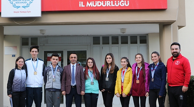 Mersin’de düzenlenen Atıcılık ve Avcılık Federasyonu Havalı Silahlar Türkiye Şampiyonasından madalyalarla ayrılan sporcular, antrenörleri Erman Yücel ve Semra Yılmaz‘la birlikte Gençlik Hizmetleri ve Spor İl Müdürü Fatih Çelikel’i ziyaret etti.