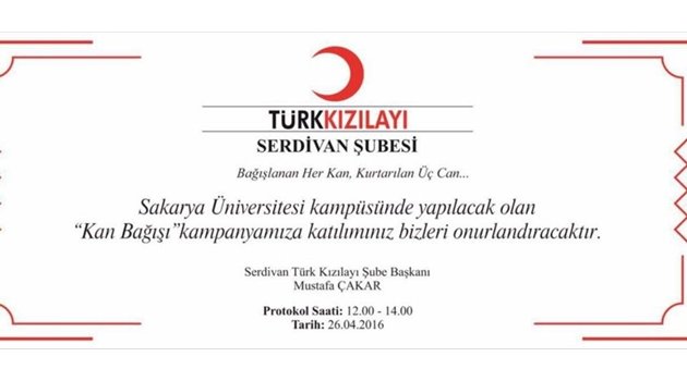 Kızılay Serdivan Şubesi tarafından “Bağışlanan Her Kan, Kurtarılan Üç Can” sloganıyla kan bağış kampanyası düzenliyor.