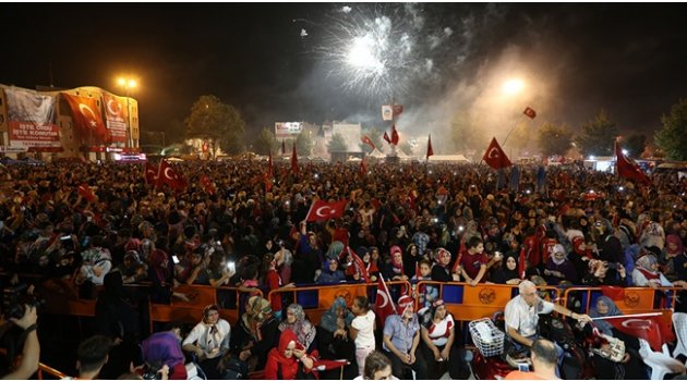 Demokrasi Meydanı’nda düzenlenen mitinge katılan Başkan Toçoğlu, “Asıl finali Cumartesi akşamı yapacağız. Bu meydanlar bizi almamalı. Hedefimiz 100 bin kişiyle büyük bir miting yapmak” ifadelerini kullanırken; Sanatçı Uğur Işılak, “Türkiye bu destanı yazdı; Avrupa, Amerika bu destanı okusun! 15 Temmuz bizim direniş ve uyanışımızın tarihidir” dedi.