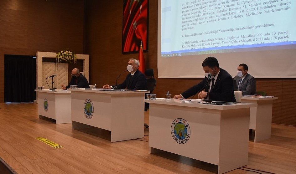 DENETİM KOMİSYONU SEÇİLDİHendek Belediyesi Ocak ayı olağan meclis toplantısı, Kültür ve Sosyal İşler Müdürlüğü Nikâh/Toplantı salonunda COVİD-19 tedbirleri kapsamında yapılırken, 13 madde oy birliğiyle ile karara bağlandı.Gündeme geçilmeden önce Başkan Babaoğlu, 2020 yılının genel bir değerlendirmesini yaparken, projeleri ve çalışmaları aktardı. Meclisin 1.maddesi uyarınca 2021 yılı Denetim Komisyonu seçimi kapalı oy açık sayım yöntemiyle gerçekleştirildi. Yapılan oylamada 2021 Mali Yılında Denetim Komisyonunda görev yapacak üyeliklere Metin Zülküf Polat (MHP), Osman Çamur (MHP) ve Aziz Koç (AK Parti) seçildi. KÜTÜPHANE ÖNERİSİ AK Parti Grup Başkanvekili Hamit İsmailoğlu gündemin 2. maddesi öncesi söz alarak hizmetler ve değerlendirme için Başkan Babaoğlu’na teşekkür ederken Hendek için öğrencilerin ders çalışabileceği, kapsamlı bir halk kütüphanesi önerdi. Başkan Babaoğlu, öneri dolayısıyla memnuniyetini dile getirirken gerekli çalışmayı en kısa zamanda başlatacaklarını ve meclisi bilgilendireceklerini söyledi. SÖZLEŞMELİ PERSONEL Gündemin 2.maddesi olan 2021 yılında çalıştırılacak Sözleşmeli Personelin görüşülmesiyle ilgili sorulara cevap veren Babaoğlu, “ 2019 yılında 54 personel var. Bu rakam 2020’de 43’e düşmüş. Çalışmalarıyla ve tahsiliyle 3 şirket personelimizi arkadaşımızı sözleşmeli personel yapıyoruz. Böylelikle sayı 46’ya çıkacak. Tüm arkadaşlarımızla yolumuza devam ediyoruz. Kimseyle yollarımızı ayırmayacağız” dedi. Konuşmalar sonrasında 2.madde oy birliğiyle kabul edildi GÜNDEM MADDELERİ Gündemin 3.maddesi 2021 Yılında Emekli olacak işçilerin kıdem tazminatının ödenebilmesi için İller Bankasından kredi kullanılması, 4. Maddesi belediyemiz sınırları içerisinde yapılacak asansör periyodik kontrollerinde 2021 yılı içerisinde alınacak ücretlerin ve idare payının belirlenmesi, 5.maddesi 657 sayılı Memurlar Kanunun belirtilen çalışma süre ve saatlerine bağlı olmaksızın Zabıta hizmetlerinde fiilen çalışan personele belediye meclis kararı ile tespit edilen ve maktuen ödenen fazla çalışma ücreti ve 6.madde olan Tarımsal Hizmetler Müdürlüğü Yönetmeliğinin kabulünün görüşülmesi maddeleri oy birliğiyle kabul edildi. OY BİRLİĞİYLE Gündemin 7.maddesi olan Belediyemiz mülkiyetinde bulunan Çağlayan Mahallesi, Kurtköy Mahallesi, Yukarı Çalıca Mahallesi ve Akarca Mahallesi belirlenen ada/parsellerdeki taşınmazların mezarlık alanı olarak kullanılmak üzere bedelsiz olarak Sakarya Büyükşehir Belediyesi Başkanlığı’na devredilmesi, 8.maddesi İçişleri Bakanlığı Mahalli İdareler Genel Müdürlüğünün 2015-8 Genelgesi ve Belediye ve Bağlı Kuruluşları ile Mahalli İdare Birlikleri Norm Kadro İlke ve Standartlarına Dair Yönetmeliğin 11. Maddesi gereğince kadro değişiminin yapılması, 9.maddesi Belediye Başkan Yardımcısı olarak görevlendirilen Meclis Üyelerine verilecek aylık ödeneğin görüşülmesi de oy birliğiyle kabul edildi. İmar planlarını içeren gündemin 10, 11, 12 ve 13. Maddeler ise oy birliği ile İmar ve Bayındırlık Komisyonuna havale etti. Başkan Babaoğlu alınan kararların hayırlı olmasını diledi. Başkan Babaoğlu, meclis sonrasında basın mensuplarının gündeme dair sorularını cevapladı.
