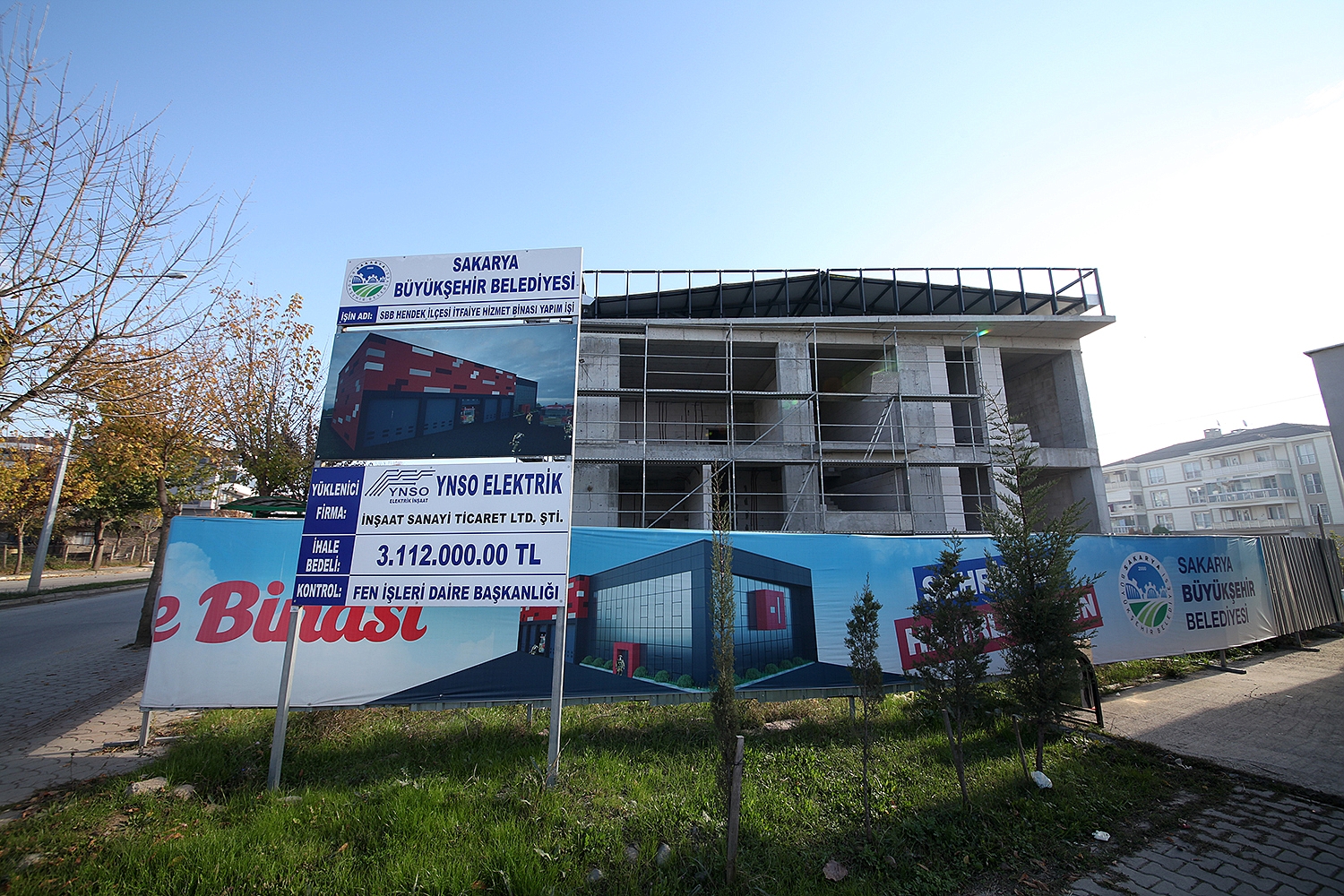 Hendek İtfaiye Hizmet Binasında devam eden çalışmalar hakkında acıkmalarda bulunan Başkan Ekrem Yüce, “Başpınar Mahallesinde 2 bin 600 metrekare alan üzerinde inşa edilen projemizin içerisinde 8 araçlık garaj, idari odalar, spor odası, eğitim salonu, yatakhaneler ve yemekhane olacak. Kaba inşaatımız bitti. Dış ve iç cephede çalışmalar sürüyor. 91 mahalleye hizmet sunacak projemiz ile inşallah olası afetlere en hızlı şekilde müdahale edeceğiz” dedi.