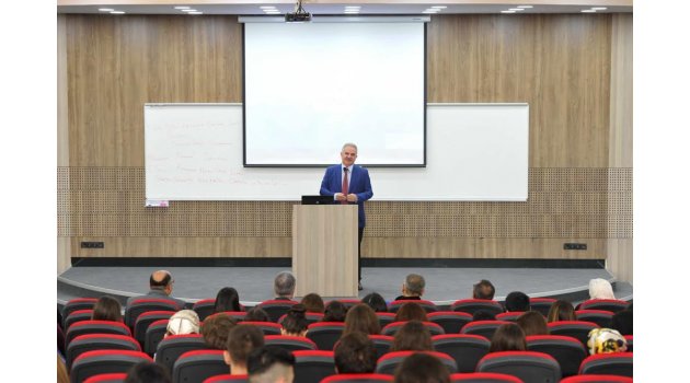 SAÜ Hukuk Fakültesi’nin ilk dersinde öğrencilerle buluşan Rektör Prof. Dr. Muzaffer Elmas, “Öncelikle yeni eğitim-öğretim yılının üniversitemiz için hayırlı olmasını diliyorum. Fakülte binamızın herkes için hayırlı olmasını diliyorum. Binamızı eğitim-öğretim dönemine yetiştirmek için büyük çaba gösterdik. Eksikliklerimizi de en kısa zamanda tamamlayacağız” diye konuştu.