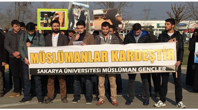 Bazı üniversitelerde İHH İnsani Yardım Vakfı’nın açmış olduğu stantlara saldırılması Sakarya Üniversitesinde (SAÜ) protesto edildi.