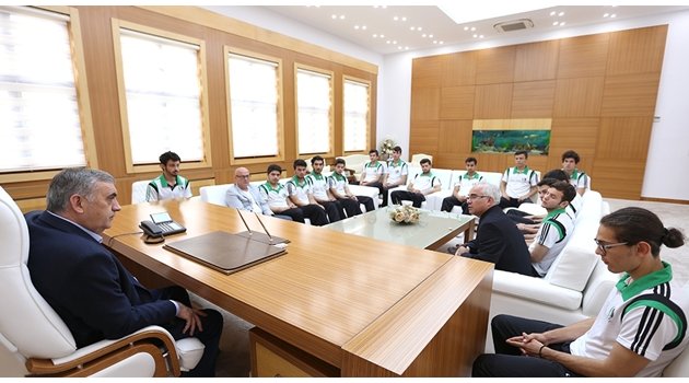 Türkiye Şampiyonası’na katılacak Sakaryaspor U19 takımını makamında ağırlayan Başkan Toçoğlu, “Mazisinde büyük başarılar yatan bir takımın geleceği sizlersiniz. İşinizi iyi yaptığınız müddetçe bu şehir daha nice başarılar kazanacaktır. Genç yaşta Türkiye Şampiyonası’nda şehrimizi temsil edeceksiniz. İnşallah güzel sonuçlar alarak bizleri gururlandırırsınız” dedi.