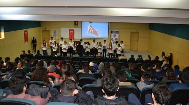 Panel,Sakarya Üniversitesi ile Sakarya Üniversitesi Vakfı Anadolu Lisesi tarafından ortaklaşa olarak “düzenlendi.SAÜ Kültür ve Kongre Merkezinde gerçekleştirilen panele konuşmacı olarak SAÜ Vakfı Anadolu Lisesi Türk Dili ve Edebiyatı Öğretmeni Kadir YAĞIZ ile SAÜ Vakfı Anadolu Lisesi Tarih Öğretmeni İsmail ŞEN katıldı. Oturum yöneticiliğini Sakarya Üniversitesi Türk Dili ve Edebiyatı bölümünde Okutman Serhat Demirel’in üstlendiği panele Vakıf Lisesi öğrencileriyle birlikte üniversite gençleri de dinleyici olarak katıldı.Konuşmasında Milli Şair Mehmet Akif Ersoy’dan bahseden Okt. Serhat Demirel daha sonra sözü İsmail ŞEN’e bıraktı.Mehmet Akif Ersoy’un 63 yıl süren hüzünlü hayatı hakkında detaylı bilgi veren ŞEN,onun hem bir fikir hem de cemiyet adamı olduğunu ifade etti.İstiklal Marşı’nın içeriğini anlatan Kadir YAĞIZ ise Akif’in marşımızda geçen “al sancak, atalarımız, bayrak, cennet, vatan, din, ezan, hak, helal, hürriyet ve iman” gibi marşın mana evrenini çevreleyen kavramlarla adeta bir değerler manzumesi oluşturulduğundan bahsetti.Okul Müdürü Ahmet KİREMİTÇİOĞLU panel sonunda ,kurumlarını kardeş okul olarak gören Sakarya Üniversitesi yetkililerine ve programda panelist olarak bulunan öğretmenlerine teşekkürlerini sundu.