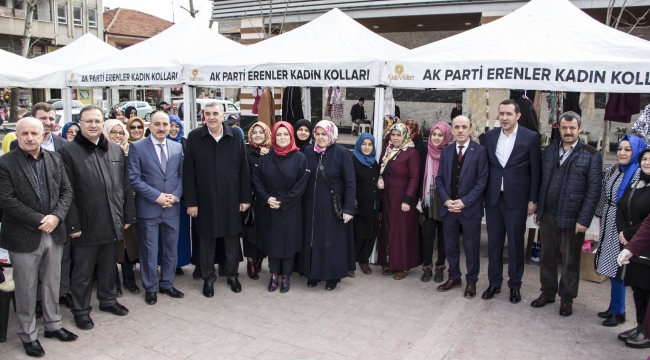 Erenler ilçe kadınları bir araya gelerek evlerinde hazırladıkları gıda, atkı, bere gibi ürünleri Yunus Emre Parkı Diriliş Meydanında kurulan kermeste satarak Afrin’de görev alan Mehmetçiğe destek oldular. Vatandaşların yoğun ilgi gösterdiği kermesi, AK Parti İl Başkanı Fevzi Kılıç, Vali Yardımcısı Bekir Dınkırcı, sakarya Büyük Şehir Belediye Başkanı Zeki Toçoğlu, erenler Belediye Başkanı Cavit Öztürk, Erenler İlçe Başkanı Resul Yılmaz Erdoğan ve Minibüsçüler Odası Başkanı Ali Bektaş ziyaret ederek destekte bulundular.“Askerimizin Yanındayız”Erenler Diriliş Meydanında kurulan kermesle, canı uğruna vatanı için mücadele eden Afrindeki Mehmetçiğe destek olmayı amaçladıklarını belirten Erenler İlçe Kadın Kolları Belgin Demirağ “ İlçe kadınlarımız bir araya gelerek Afrin Harekâtında mücadelede olan Mehmetçiğimize destek olmak ve Askerimizin yanında olduğumuzu belirtmek adına elimizden ne geliyorsa yapmaya çalışıyoruz. İlçe kadınlarımız gerek hazırladıkları el emeği göz nuru ürünleri kermeste satarak gerek askerimize her ilmekte dua edip atkı bere örerek askerimize duacı olarak askerimizin maddi manevi yanında olmaya çalışıyoruz. Dolayısıyla askerimize destek olan kermesin düzenlenmesinde emeği geçen herkese teşekkür ediyorum” dedi“Milli Ruhumuz İle Muzaffer Olacağız”Türk Silahlı kuvvetlerinin maddi olarak dünyanın en güçlü orduları arasında olduğunun altını çizen Başkan Öztürk “ Kahraman ordumuzun maddi desteğe ihtiyacı olmadığını biliyoruz. Burada Kermesi düzenleyen kadınlarımızın Nene Hatun ruhu ve bilinci ile Mehmetçiğimizin yanında olduklarını görüyoruz. Milli birliğimizi milli ruhumuzu ortaya koyan kermes Afrin vatanı için milleti için canını hiçe sayarak savaşan Mehmetçiğimize manevi destek amaçlı yapılmaktadır. Gerek Kahraman askerlerimiz, gerek cephe gerisinde güçlü bir milli ruh ile hareket eden milletimiz ile muzaffer olamayacağımız karşı koyamayacağımız bir güç yoktur. Evlerinde hazırladıkları ürünleri bu kermeste sergileyen hanımlarımıza ve kermesi ziyaret ederek destek olan vatandaşlarımıza teşekkür ediyor Afrin’de hain terör örgütüyle girilen çatışmada şehit düşen askerlerimize Allah’tan rahmet milletimize başsağlığı diliyorum ”dedi.