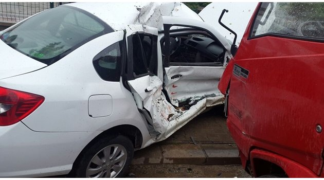 Edinilen bilgilere göre, hendek ilçesi Sarıdede Mahallesi’nden Mahmutbey Mahallesi istikametine gitmekte olan Mahmut K. (34) idaresindeki 54 KC 195 plakalı kamyonet, ara sokaktan aynı yol güzergahına çıkmak isteyen Sinan E. (45) idaresindeki 34 VU 2509 plakalı otomobile çarptı. Çarpışmanın şiddeti ile savrulan otomobil ilköğretim okulunun bahçe duvarına çarparak durabildi. Kazada Sinan E. (45) ile beraberindeki Hacer E. (36), Şakire T. (51), Mahmut Emin E. (10) ve kamyonet sürücüsü Mahmut K. (34) yaralandı. Yaralılar olay yerine gelen 112 Acil ambulanslar ile Hendek Devlet Hastanesi'ne kaldırıldı. Yaralılardan 10 yaşındaki Mahmut Emin E.’nin durumunun ağır olduğu öğrenildi.
