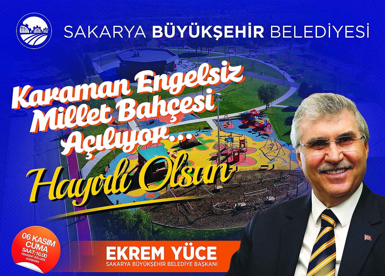 Sakarya Büyükşehir Belediyesi tarafından inşa edilen karaman Engelsiz millet bahçesi 6 Kasım Cuma günü saat 16.00’da açılıyor. 19 bin metrekarelik alan üzerinde tamamlanan projenin açılışına tüm vatandaşları davet eden Başkan Ekrem Yüce, projenin bölgenin sosyal yaşantısına yeni bir alternatif oluşturacağını söyledi. Hayırlı olsunAltyapı ve üstyapı yatırımlarının yanı sıra şehre değer katacak sosyal yatırımları da önceleyen bir anlayışla hareket ettiklerini dile getiren Başkan Ekrem Yüce, “Hamdolsun bir çalışmamızı daha hemşehrilerimizin hizmetine sunacak olmanın mutluluğunu yaşıyoruz. İçerisinde kafe-restoran, çocuk oyun alanları, basketbol sahası, oturma grupları, yürüyüş ve koşu yollarının yanı sıra yeşil alanların yer aldığı Karaman Engelsiz Millet Bahçesi’nin şehrimize hayırlı olmasını diliyorum. 6 Kasım Cuma günü saat 16.00’da açılışımıza tüm vatandaşlarımızı davet ediyorum” dedi.