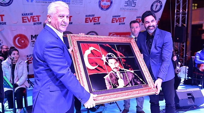 Karasu Milli İrade Platformu tarafından İlçe Kent Park önünde organize edilen Referandum Mitingi coşku içinde geçti. Mitingde sahne alan Ünlü Sanatçı Uğur Işılak izleyenlere unutulmaz anlar yaşattı.