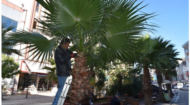 Karasu'da Palmiye Ağaçlarının Bakımı Yapıldı