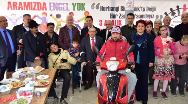 Karasu Kent Parkta düzenlenen programa, karasu Kaymakamı Şafak Gürçam, Karasu Belediye Başkanı Mehmet İspiroğlu, Karasu Askerlik Şube Başkanı Per.Ütgm. Cihan Şimşek, Karasu Belediye Başkan Yardımcıları, Kızılay Şube Başkanı Adem Ekşi, Karasu Muhtarlar Derneği Başkanı İsmail Hakkı Topaloğlu, engelli vatandaşlar ve aileleri katıldı.Buluşmada konuşan Karasu Belediyesi Kültür ve Sosyal İşler Müdürü Fatma Tatlı; “Bu önemli günde İlçemiz Protokolü ve engelli vatandaşlarımızla bir araya geldik. Hepimizin birer engelli adayı olduğunu asla unutmamalıyız. Yıl içerisinde engelli vatandaşlarımız ve aileleriyle sık sık bir araya geliyor, sıkıntılarını dinliyoruz. Sadece bu gün değil 365 gün yanınızda destekçiniz olduğumuzu asla unutmayınız. Bu vesileyle 3 Aralık Dünya Engelliler Gününüzü kutlar hayırlı günler dilerim” dedi. ‘’Engelsiz Bir Karasu”Günümüzde, engelli vatandaşları toplumsal hayatın bir bütünü olarak görmeliyiz diyen Karasu Belediye Başkanı Mehmet İspiroğlu; “Hükümetimizin, engelli bireylerimize yönelik yaptığı çalışmaları hep birlikte görüyoruz. Sanattan siyasete, spordan bilime kadar birçok alanda engelli vatandaşlarımızı hayatın içerisinde görmek bizleri sevindiriyor. Engelli kardeşlerimizin sorunlarına çözüm üretmeyi en temel görevlerinden olarak gören hükümetimiz, her geçen gün bu alan üzerinde yeni bir proje üretmektedir. Bu yapılaşmadan yola çıkarak, bizlerde engelli vatandaşlarımızın yanında olduğumuzu bildirir ve engelsiz bir Karasu için çalışmalarımızın artarak devam edeceğini belirtiriz” dedi.