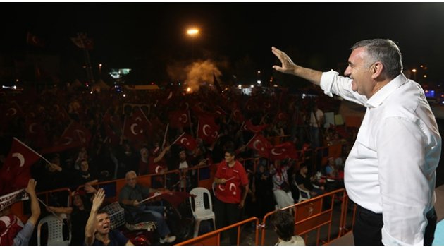 AK Parti İl Başkanı Fevzi Kılıç, “Bu vatana, millete eser üretenler kalplerde ve gönüllerde unutulmaz bir yer edindiğini hepimiz biliyoruz. Bu ülkeye eser üretemeyenlerin de şu an nerelerde olduklarını çok iyi biliyoruz. Büyük davalar büyük adamların sırtında yürür. Cesaretli adımların sahibi Cumhurbaşkanımızın bir talimatı ile hep beraber sokaklara döküldük. Tankların karşısına geçtiniz. Göğsünüzü silahlara siper ettiniz. 22 gündür buralardayız. Biz burada beraberce yol arkadaşı olduk. Sizin bu yüreğiniz olduğu sürece memleketimize hiçbir şey olmaz” şeklinde konuştu.