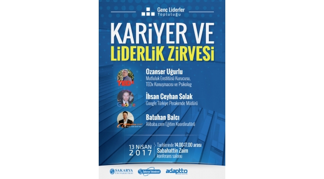Sakarya Üniversitesi Genç Liderler Topluluğu tarafından “Kariyer ve Liderlik Zirvesi” düzenleniyor.