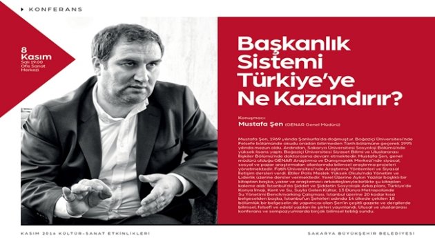 Sakarya Büyükşehir Belediyesi Kültür ve Sosyal İşler Dairesi Başkanlığı tarafından her ay düzenli olarak gerçekleştirilen kültür sanat Etkinliklerinde Kasım takvimi açıklandı. Tiyatro gösterimlerinden sergi açılışlarına, konferanslardan ustalara saygı günlerine, sinema gösterimlerinden panellere kadar birçok renkli etkinliği Sakaryalılar ile buluşturan programlarda Kasım ayında da birbirinden kaliteli programlar kültür sanat dostları ile buluşacak. Nevzat Kor’a Saygı GecesiTeknotratların Hocası olarak kabul edilen Prof. Dr. Nevzat Kor’a saygı gecesinin de düzenleneceği etkinlik takvimi ile ilgili Kültür ve Sosyal İşler Dairesi Başkanlığı’ndan yapılan açıklamada; “Kasım Kültür Sanat Etkinliklerimiz birbirinden kaliteli isimler ve programlar ile başlıyor. Tüm kültür sanat dostlarını etkinliklerimize bekliyoruz” ifadelerine yer verildi. Büyükşehir Belediyesi Kasım Kültür Sanat Etkinlikleri Takvimi şu şekilde; Konferans Konuşmacılar: Mustafa Şen (GENAR Genel Müdürü) Konu: Başkanlık Sistemi Türkiye’ye Ne Kazandırır? 8 Kasım Salı / Ofis Sanat Merkezi / 19.00 Tiyatro Buluşması Nehir – Ankara Devlet Tiyatrosu 8 – 9 Kasım Salı Çarşamba / AFA 20.00 Biletler, Kültür ve Sosyal İşler Dairesi Başkanlığı’nda Online bilet için: www.sakarya.bel.tr Konferans Konuşmacılar: Kenan Alpay, Merve Şebnem Oruç Konu: Türkiye’nin Dış Politikasında Musul ve Kerkük’ün Önemi 11 Kasım Cuma / AKM / 19.00 Panel Konuşmacılar: Prof. Dr. Hacı Mehmet Günay, Prof. Dr. Abdullah Aydınlı, Prof. Dr. Adem Apak, Prof. Dr. Abdülhamit Birışık, Yrd. Doç. Dr. Kamil Yaşaroğlu Konu: Türkiye’de İslami İlimlerin İhyası ve Muhammed Hamidullah 14 Kasım Pazartesi / AKM / 19.00 Sergi Istanbul Photo Avards 2016 – Anadolu Ajansı Fotoğraf Sergisi 15 Kasım Salı / Ofis Sanat Merkezi / 18.00 Tiyatro Buluşması 80 Günde Devr-i Alem – Bursa Devlet Tiyatrosu 15 – 16 Kasım Salı Çarşamba / AKM / 20.00 Biletler, Kültür ve Sosyal İşler Dairesi Başkanlığı’nda Online bilet için: www.sakarya.bel.tr Söyleşi ve İmza Günü Taşkın Tuna – Muhteşem Tasarım / 17 Kasım Perşembe Lise Etkinliği / Arifiye Fen Lisesi / 14.00 Kütüphane Etkinliği / Faik Baysal Kütüphanesi / 18.00 Ustalara Saygı Onur Konuğu: Prof. Dr. Nevzat Kor 18 Kasım Cuma / AKM / 19.00 Panel Konuşmacılar: Prof. Dr. Teyfur Erdoğdu, Prof. Dr. Mehmet Yaşar Ertaş, Doç. Dr. Haşim Şahin, Emine Çaykara Konu: Halil İnalcık’ın Ardından 21 Kasım Pazartesi / AKM / 19.00 Söyleşi ve İmza Günü Prof. Dr. Bedri Gencer – Modernliğin Hikmetinden Sual 22 Kasım Salı / Ofis Sanat Merkezi / 19.00 Tiyatro Buluşması Soğuk Bir Berlin Gecesi – Antalya Devlet Tiyatrosu 22 – 23 Kasım Salı Çarşamba / AKM / 20.00 Biletler, Kültür ve Sosyal İşler Dairesi Başkanlığı’nda Online bilet için: www.sakarya.bel.tr Söyleşi ve İmza Günü Güray Süngü – Vicdan Sızlar / 23 Kasım Perşembe Lise Etkinliği / Ali Dilmen Anadolu Lisesi / 14.00 Kütüphane Etkinliği / Faik Baysal Kütüphanesi / 18.00 Panel Konuşmacılar: Prof. Dr. Ahmet Kavas, Doç. Dr. Fatih Şeker, Cengiz Aydoğdu, İhsan Ayal Konu: Devlet Geleneğinde Fikri Hayatın Rolü ve Siyasetin İlmi 25 Kasım Cuma / AKM / 19.00 Sergi Şükür – Tezhip Sergisi – Mesude Hülya Şanes Doğru 29 Kasım Salı / Sakarya Sanat Galerisi / 18.00 Sinema Gösterimleri Şans Ayağıma Geldi / 3 Kasım Perşembe / OSM / 20.00 Sen Şarkılarını Söyle / 10 Kasım Perşembe / OSM / 20.00 Leviathan / 17 Kasım Perşembe / OSM / 20.00 Bir Ayrılık / 24 Kasım Perşembe / OSM / 20.00