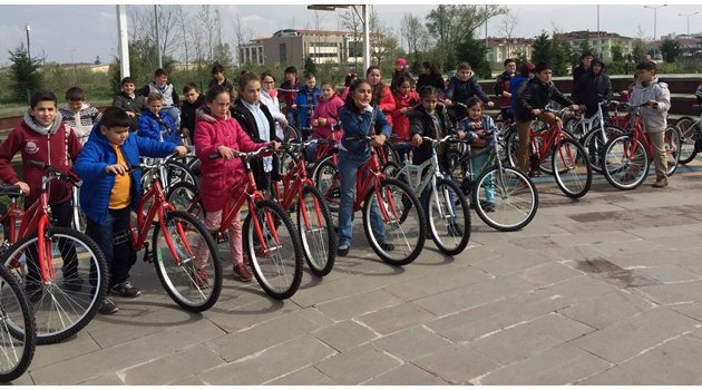Açıklamaların ardından Serdivan Belediye Başkanı Yusuf Alemdar ve Dünya Motosiklet Şampiyonu Kenan Sofuoğlu yetim çocuklarla tek tek ilgilenerek bisikletlerini dağıttı.