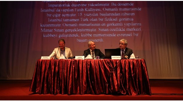 Konuşmasında Mimar Sinan’ın şehircilik alanında bir deha olduğunu vurgulayan Mimar Suphi Saatçi, “Şehirlerin tarihi medeniyetin tarihidir. Sinan konusunda gözden kaçan önemli bir nokta var. Sinan mimar olmadan önce çok iyi bir mühendisti. Bunu özellikle orduda göstermiştir. Seferlerde karşılaşılan sıkıntılar, yol vermeyen su geçitlerinde bulduğu çözümler ile parlamıştır. Sinan bir anda ortaya çıkmadı. Sinan’ın arkasında 300 yıllık bir birikim var. Son dönem Osmanlı eserleri için: ‘batı mimarisi, batıdan kopyalanmış eserler’ deniyor. Ancak bu eserler bizim mimari özelliklerimizi taşıyor. Asıl batıdan aldıklarımız bu kimliksiz apartmanlardır. Sinan’ın inşa ettiği tüm eserler şuanda duruyor ve işlevlerini devam ettiriyor” şeklinde konuştu.Sinan’ın Eserleri Kanıttır