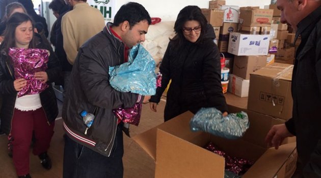 Sakarya Büyükşehir Belediyesi Sosyal Gelişim Merkezi’nde eğitim alan Engelsiz Hobi Kursu öğrencileri, Halep için ‘Bir Yürek de Sen Isıt’ sloganıyla düzenlenen yardım kampanyasına destekte bulundu. Engelli öğrencilerin aileleri tarafından örülen atkı, bere, şapka gibi eşyalar, özenle paketlenerek yetkililere teslim edildi. Bu örnek davranıştan duydukları memnuniyeti dile getiren Engelli Hizmetleri Şube Müdürü Nurcan İris, öğrencilerine ve ailelere teşekkür etti.