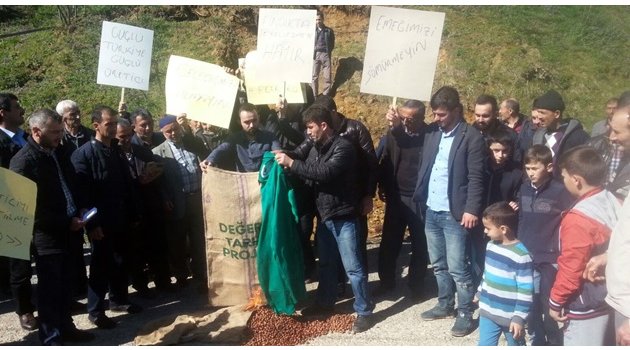 Açıklamaların arından köylüler fındık fidelerini keserek yaşanan durumu protesto etti.