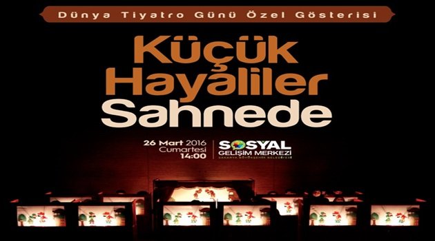 Sakarya Büyükşehir Belediyesi sosyal gelişim merkezi Dünya Tiyatro Günü’nü çeşitli etkinlikler ile kutlayacak. Yapılan açıklamada, “Sosyal Gelişim Merkezi, Dünya Tiyatro Günü’nü 26 Mart Cumartesi günü birbirinden renkli etkinlikler ile kutlayacaktır. Türkiye’de bir ilk olacak olan programda 21 çocuk kulübü üyesi aynı anda sahneye çıkacak ve Karagöz-Hacivat oyunu gösterimi gerçekleştirecektir. Sosyal Gelişim Merkezi Konferans Salonu’nda saat 14.00’da başlayacak buluşmada çocukları sürpriz hediyeler de beklemektedir. Tüm çocuklar ve aileleri gösterimlere davetlidir” ifadelerine yer verildi.