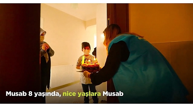 Büyükşehir Belediye Başkanı Ekrem Yüce, Koronavirüs nedeniyle evde derslerine devam ederek ve sokağa çıkmayarak büyüklerine örnek olan 8 yaşındaki Musab’a sürpriz doğum günü düzenledi.