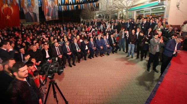 Akyazı’da başlayan referandum çalışmaları ilk halk mitingini Akyazı Topağaç Mahallesinde Maliye Bakanı Naci AĞBAL katılımı ile başlattı.