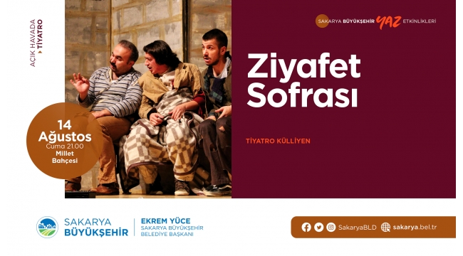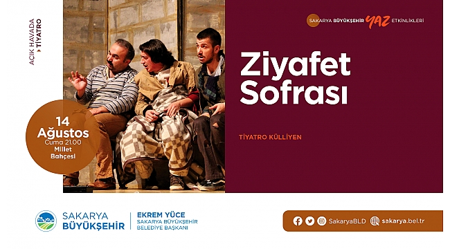Büyükşehir Belediyesi tarafından düzenlenen yaz etkinlikleri kapsamında ‘Ziyaret Sofrası’ isimli tiyatro oyunu sahnelenecek. Tiyatro 14 Ağustos Cuma günü saat 21.00’de başlayacak.