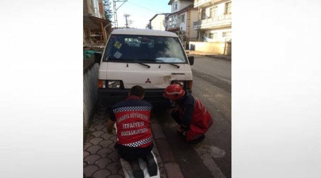 Minibüsün Motoruna Sıkışan Kedi Kurtarıldı