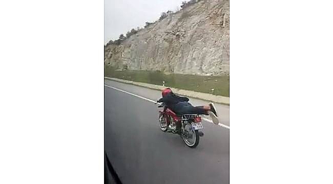 Adapazarı - kaynarca duble yolunda yanından geçen araçlara aldırış etmeden motosiklet üzerinde uzanarak bir süre bu şekilde yolculuğa devam etti. Trafiği tehlikeye düşürerek yolculuk yapan ve isimleri öğrenilemeyen genç sürücülerin bu hareketlerini o esnada yanlarından geçen otomobilde bulunan bir kişi tarafından amatör kameraya kaydedildi.