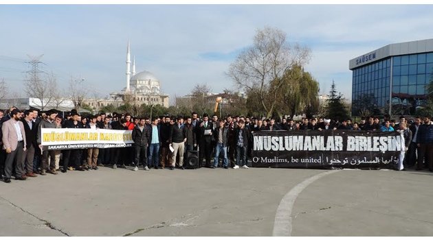SAÜ Helikopter Pistinde yapılan basın açıklamasına Alperen Ocakları, Milli Türk Talebe Birliği, Ülkü Ocakları, İHH, Yedihilal ve Anadolu Gençlik Derneği katıldı.Müslüman Gençler Topluluğu adına açıklamayı okuyan Sakarya Alperen Ocakları Üniversite Başkanı Emin Alişan şu ifadeleri kullandı ;Evini şehrini terk etmek zorunda bırakılmış,toplumun dışına itilmiş,binbir zulme maruz kalmış,tahkir edilmiş ama bir yandan da Son Peygamberin , Dünya’nın yaratılmasının asıl sebebi olan O(s.a.v)’nun ümmeti olmanın bizlerde uyandırdığı heyecan ile neşe ile ve hissettirdiği şeref ile bugün burada ODTÜ’de namazlarını eda etmek isteyen bir avuç İslam sevdalılarına karşı gerçekleşen aşağılık saldırıda bir kum tanesi kadar dahi pay sahibi olanlara haykırışımızı duyurmak için basın açıklaması yapıyoruz.BİLİYORUZ;İslamiyet döneminin firavunu Ebu Cehil’in torunlarının beslendikleri yer kin ve nefretin vuku bulduğu noktalardır,şefkat nedir bilmeyen,şeref kelimesinin teğet geçtiği et parçalarının zulmün sonunun zulüm olduğunu kavrayamaması gayet normaldir.ODTÜ’lü kardeşlerimize saldırıda bulunan kalpleri kömüre dönmüş yaratıklar, ve akademisyen kılığına bürünmüş kılıksız akıl hocaları devletimiz tarafından hak ettikleri şekilde cezalandırılmalılardır. Üniversitelerde eğitim verme misyonundan sapmış olan ODTÜ’lü nefret imalatçılarını unutmayacağız.ODTÜ’de geçmişten günümüze dek saldırıların arkasında olan bizlerin nezdin de yerde ki çamurdan dahi değersiz olan provakatör akademisyenlere dur demek için halen neyi bekliyoruz ? Hepimiz bilmeliyiz ki eğer bugün bunlara dur demezsek gelecekte yaşanması muhtemel olaylarda herkesin pay sahibi olacağını söylüyoruz.ODTÜ’de ki olayların azmettiricilerine tepki verilmez ise saldırıların devamının önüne geçilmesi mümkün değildir ve saldırılar her birimizin içinde patlayan volkanların şiddetini arttırmaktadır.Yetkililerden bir an önce gerekeni yapmasını bekliyoruz eğer gerekeni yapmaktan yoksunsalar ise bizler her şeyimizi ortaya koyup yapılması gerekenleri bir bir yapmaya hazırır.Kalpleri yok olmuş,gözleri kinle dolmuş,zulme esir olmuş saldırganların karşısında son nefesimize kadar inancımızın bize bahşettiği tüm gücümüz ile savaşacağız.Kavgamız batılın çöküşünü görene dek sürecektir ve yetkililer atılması gereken adımları atmaz iseler Üniversitemizden başlayarak bizlere o zavallıları yaka paça dışarı atmaktan başka çare kalıyor mu ?ODTÜ başta olmak üzere diğer üniversitelerimizde ki inanan kardeşlerimize diyoruz ki ;HZ. Ebubekir (r.a) ‘ın HZ. Peygamberimiz Muhammed Mustafa (s.a.v) e dediği o tarifi mümkün olmayan bizlerin içine rahatlan derin mesajı kesinlikle unutmasınlar ; Korkma, çekinme, üzülme, hüzünlenme yei'se kapılma Allah bizimle beraberdir.
