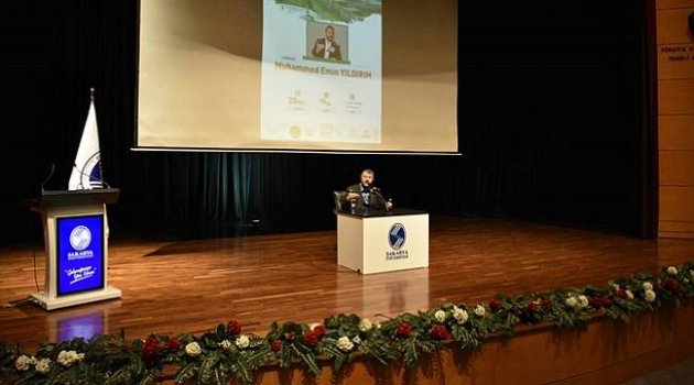 SAÜ Kongre Merkezi’nde düzenlenen etkinliğe araştırmacı-yazar Muhammed Emin Yıldırım konuşmacı olarak katıldı.Allah rızası için insanları sevmeliyizEtkinlikte konuşan Yıldırım, gençlerin düşüncelerinin basite alınmaması gerektiğine dikkat çekti. Gençlerin fikirlerine ve yaptıklarına sahip çıkılması ve desteklenmesi gerektiğini belirten Yıldırım, “Gençler bizim için çok önemlidir. Onlar bizim ilerlememizi sağlayacak. Gençlerimize inanıp onlara yol göstermeliyiz, fırsat vermeliyiz. Peygamber Efendimiz zamanında da bu çok önemliydi. Kendisi gençleri çok önemsemiştir. ‘O çağlarda öyleymiş’ deyip geçmek yerine Peygamber Efendimiz zamanında nasılsa, o şekilde biz de günümüzde gençlerimize destek çıkmalıyız. Bizler de nübüvvet ikliminin farkına varmalıyız. Allah rızası için bir şeyler yapma derdine düşmeliyiz. İnsanları Allah rızası için sevmeliyiz” ifadelerini kullandı.