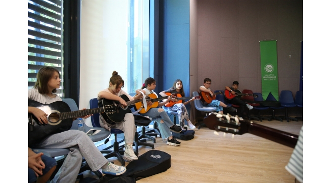 Büyükşehir Belediyesi tarafından SGM’lerde açılan yaz kurslarına ilgi her zamanki gibi yoğun şekilde devam ederken derslerin başladığı gitar kursunda minikler hem öğreniyor, hem de bir arada keyifli vakit geçiriyorlar.