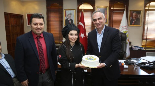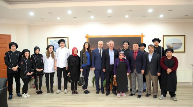 Yiyecek, İçecek Hizmeti Alanı Öğrencileri Sapanca’ya ve okullarına yaptığı hizmetler için Sapanca Belediye Başkanı Doç. Dr. Aydın Yılmazer makamında ziyaret ettiler. Yılmazer’e kendi atölyelerinde kendi elleriyle yaptıkları Sapanca Belediyesi logolu yaş pasta ve çeşitli kuru pastalar ikram ettiler.Sapanca Belediyesi olarak eğitime son derece büyük destek verdiklerinin altını çizen Yılmazer, Sapanca’da ilk defa böylesine bir desteğin yaşandığına dikkat çekti. Gençlerimizin iyi şartlarda okuması gerektiğini vurgulayan Yılmazer, Sapanca Belediyesi’nin her zaman eğitime destek vermeye devam edeceğini söyleyip, öğrencilere bu nazik ziyaretlerinden dolayı teşekkür etti.