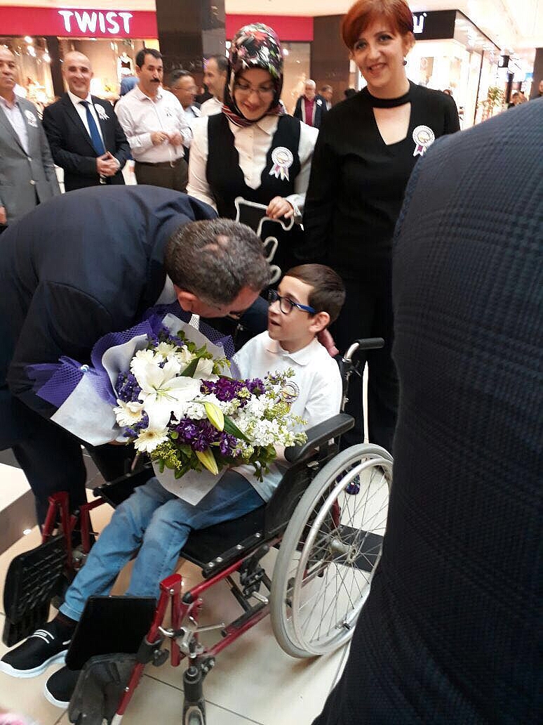 YOĞUN İLGİSerdivan Kaymakamı Muhsin Çatmadım, Serdivan İlçe Milli Eğitim Müdürü Ali Dere, İl Milli Eğitim Müdür Yardımcısı Oğuzhan Özkan, Şube Müdürleri, Serdivan İlçe Sağlık Müdürü Sevda Gürsel, Okul Müdürleri, Özel Eğitime Muhtaç Çocukları Koruma Derneği Başkanı Gülsen Öziş, Yönetim Kurulu üyeleri, öğretmenler, öğrenciler ile velilerin yoğun olarak katılım gösterdiği ve 2 gün süren sergi vatandaşlarında büyük beğenisini topladı. HEDİYE VERİLDİ2 gün süren sergiye Müzik Öğretmenleri Vildan Karabacak ve Yücel Kaçar enstrümantal müzikle renk katarken Türkiye genelinde düzenlenen spor müsabakalarında derece alan öğrencilere, Özel Eğitime Muhtaç Koruma Derneği tarafından küçük altın hediye edildi. Hediyeleri Serdivan Kaymakamı Muhsin Çatmadım, Gülsen Öziş ve Yönetim Kurulu üyeleri takdim etti.