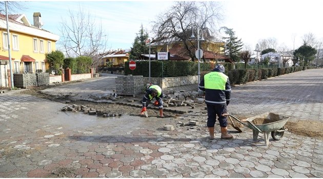 Her mevsim Sapanca’nın, gerek yayalar gerekse araçlar tarafından en çok kullanılan caddelerinden biri olan Rüstempaşa Mahallesi Özkum Caddesi yolu, Fen İşleri Müdürlüğü ekiplerinde düzenleniyor. Yol zemininde, özellikle araçlar trafiği bakımından zafiyet arz etmesi muhtemel olan aksaklıkları önlemek amacıyla, yola döşeli durumda bulunan ve yıpranmadan dolayı teknik standartlara uymayan parke taşları yenileniyor.