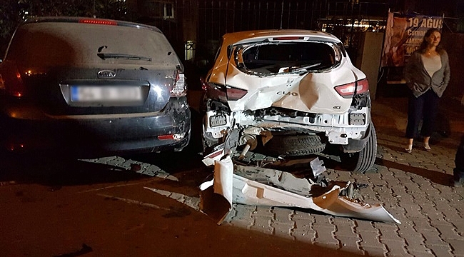 Park Halindeki Araçlara Çarparak Durabildi! 4 Yaralı