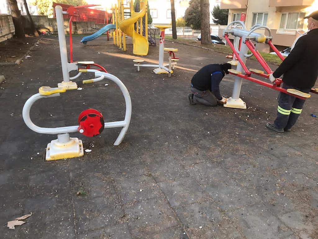Serdivan genelindeki çocuk oyun grubu ve spor ekipmanlarının bakımı yapılıp onarımdan geçiriliyor.