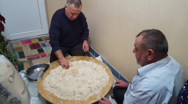 Melekşe Solak Mahallesi sakinlerinden Nurettin KUZU ve Turan ÇELİK, bu tatlının tanıtılması ve öğrenilmesi amaçlı bir uygulama ile helvayı yaptı.