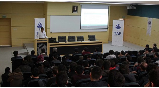 Sakarya Üniversitesi (SAÜ) Robot Topluluğu ve TAF Network ortaklığıyla düzenlenen söyleşiye, TAF Genel Koordinatörü Cemal Alçak ve Osaka Üniversitesi’nden Doç. Dr. Sadi Vural konuşmacı olarak katıldı. Açılış konuşmasını sakarya Üniversitesi Mühendislik Fakültesi Dekan Yardımcısı Doç. Dr. Yılmaz Uyaroğlu’nun yaptığı söyleşiye SAÜ’lü öğrenciler yoğun ilgi gösterdi.TAF Network’un amaçlarından söz eden Cemal Alçak, “Bu program yüksek lisans, doktora, post doktora gibi lisans sonrası eğitim ve akademik çalışmalarına yurtdışında devam edecek üniversiteler ve akademisyenlere yönelik bilgi paylaşımı ve iletişim için geliştirilen bir programdır. Yurtdışında kariyer yapmak ve eğitimini devam ettirmek isteyen tüm öğrencilerimizin yurt dışına gitme hayallerini gerçekleştirmek için çalışıyoruz” şeklinde konuştu.Yüz tanıma teknoloji çalışmalarıJaponya’daki çalışmaları hakkında bilgiler veren Doç. Dr. Sadi Vural, “Bu güne kadar yüz tanıma teknolojisiyle ilgili birçok çalışma yaptım. Şu anda çalışmam üç yaşındaki bir bebek seviyesinde tanıma yapabiliyor. İnsan beynini örnek alırsak, daha önce görmediği bir şeyle karşılaştığında durur. Çünkü beyin o şeye hazırlıksızdır. Yüz tanıma teknolojisi de aynı şekilde çalışıyor” dedi.Japonya’daki yaşantısından örnekler veren Doç. Dr. Vural, “Japonya’da ufkum açıldı. Daha fazlasının yapılabileceğini gördüm. Türkiye’deki toplum baskısını orada yaşamadım. Bu sayede yeteneklerimin ve yapabileceklerimin farkına vardım” diye konuştu.Eğitim hayatını Japonya’da sürdürmek isteyen öğrencilere tavsiyelerde bulunan Doç.Dr. Vural, “İlk önce gideceğiniz üniversite ve hocayı bulmalısınız. Hedefleriniz net olmalı ve asla ben yapamam dememelisiniz. Benim hedefim akademik yapıyla endüstriyi birleştirerek çalışmak ve dünya yüz tanıma teknolojisini yönetmek. Nokta atışı yapmanız gerekiyor. Daha sonrasında sisteme kendinizi bırakın sistem sizi öğütür” ifadelerini kullandı.