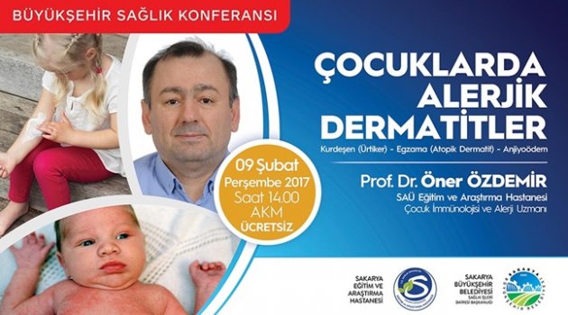 Sakarya Büyükşehir Belediyesi Sağlık İşleri Dairesi Başkanlığı ve sakarya Üniversitesi Eğitim ve Araştırma Hastanesi (SAÜEAH) işbirliği ile düzenlenen sağlık konferansları devam ediyor. Bu kapsamda 9 Şubat Perşembe günü Çocuklarda Alerjik Dermatitler konulu konferans katılımcılar ile buluşacak. Perşembe AKM’deAKM’de gerçekleştirilecek programa SAÜ Eğitim ve Araştırma Hastanesi Çocuk İmmünolojisi ve Alerji Uzmanı Prof. Dr. Öner Özdemir konuşmacı olarak katılacak. Yapılan açıklamada, “9 Şubat Perşembe günü saat 14.00’da AKM’de gerçekleştirilecek ‘Çocuklarda Alerjik Dermatitler’ konulu konferansımıza tüm hemşerilerimiz davetlidir” ifadelerine yer verildi.
