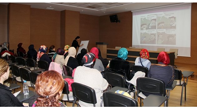 Sosyal Gelişim Merkezi Anne-Baba Atölyesinde dersler başladı. Çocuklarla etkili iletişim konusunda düzenlenen ilk seminere katılan Psikolog Miray Şahin, “Çocuklarımızla iletişime geçerken aktif dinleme metodunu kullanmak gerekir. Onların duygularının isimlendirilmesi ve yaş özellikleri baz alınarak kelimelerde seçici olmak gerekmektedir” dedi.