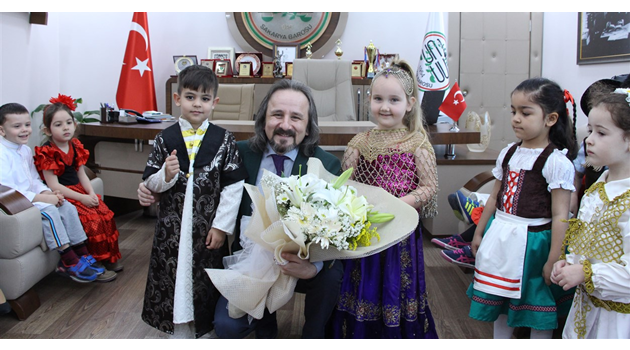 Şölen havasında, 23 Nisanı kutlayan çocuklar çizgi film kahramanları ve palyaçolarla eğlenerek bol bol resim çektirdiler.Bir süre misafirleri ile sohbet eden Başkan Kazan çocuklara avukatlık mesleğini ve Baro’yu tanıtıcı açıklamalar yaptı. Sakarya Barosunda bu yıl ilk defa 23 Nisan’da Başkanlık koltuğuna Şahin Okulları 4.sınıf öğrencisi Nehir Aydın oturdu. Hukuk adalet ve Çocukların geleceği üzerine açıklamalarda bulunan Nehir Aydın “Avukatlarımıza ve Baromuza güveniyoruz onlar her zaman bizim yanımızda onları çok seviyoruz. Ayrıca bu bayramı bizlere hediye eden büyük Atatürk’e çok teşekkür ediyoruz ve onu çok seviyoruz” dedi.Başkan Kazan bir süre çocuklarla geleceğe dair, hayallerine dair sohbet etti. Günün anlam ve önemine de değinen Başkan Kazan bu günün büyük küçük hepimizin bayramı olduğunu belirterek “Atatürk’e minnettarız” dedi.COŞKUYLA 23 NİSANI YAŞADILARHediyeler, ikramlar, şarkılar ve şiirler eşliğinde hoşça vakit geçiren çocuklar 23 Nisan Ulusal Egemenlik ve Çocuk Bayramını tüm coşkusu ve ruhuyla yaşadılar.Baro Başkanı Av. Zafer Kazan’a çiçek takdim eden minik öğrenciler, öğretmenleri eşliğinde bu gün için kendisine teşekkür ettiler.Ziyaretlerin ardından günün anlam ve önemine dair ayrıca bir kutlama mesajı yayınlayan Başkan Kazan, 23 Nisanın Bayramının iptal edilebilecek bir gün olmadığını belirterek : “Bırakın şu önemsiz şeyleri artık hadi, Baroda çocuklar var bugün geleceğimiz var, Avukatlar var, Barışın kardeşliğin ve huzurun programı var, 23 Nisan var...”dedi.Mesajında son günlerde sıkça kamuoyuna da konu olan çocuklara yönelik, istismar ve şiddet olaylarına gönderme yapan Başkan Kazan : “Sakın hele elleriniz kirli ise onlara dokunayım demeyin kırılgandırlar, güneşimizi söndürmeyin...” diyerek uyarılarda bulundu.Başkan Kazan’ın 23 Nisan Ulusal Egemenlik ve Çocuk Bayramı nedeniyle yayımlamış olduğu kutlama mesajının tamamı şöyle: “KÜÇÜK ŞEYLER” GİBİ GÜÇLERİMİZ “ŞAHİN” GİBİ KANATLARIMIZ VAR Hiç bir şey durduramaz bizi, hiç bir şey geriye çekemez... Biz izin vermediğimiz sürece hiç bir şey bizi sindiremez... Hastalık bedenimizi tehdit edebilir ama sadece fani bir beden değiliz biz... Sahip olduğumuzu bilmediğiniz güçlerimiz var bizim..."KÜÇÜK ŞEYLER" gibi kahramanlarımız, "ŞAHİN" gibi kanatlarımız var…GÖZÜMÜZ KULAĞIMIZ ONLARDABir limanda demirlemiş olabiliriz, sahilde deniz kabuklarıyla oyalanıyor da olabiliriz ama gözümüz kulağımız onlardadır bizim... Onların çağrılarını işitiriz. Dikkatlerimiz onlara yönelmiştir... Bizi çağırdıkları an bütün o önemsiz ve değersiz şeyleri bırakmaya ve asla geriye bakmadan onlara doğru koşmaya hazırız biz...BEKLEMEYECEĞİZ! GELECEĞİ BİZ İNŞA EDECEĞİZ!Onlar Atatürk'ün göz bebeği, yurtta sulhun cihanda sulhun amacı, 23 Nisan'ın ruhu, oyunları ile hayalleri ile dünyamızı yeniden inşa edecek olan çocuklarımız... Eğer onlar çağırdığında koşamıyorsanız ruhunuzda bir atalet hissediyorsanız en azından yoldan çekilin koşanlara yol açın. Çünkü çocukların ruhu narindir hassastır incitmeye gelmez... Sakın hele elleriniz kirli ise dokunayım demeyin kırılgandırlar, güneşimizi söndürmeyin... İstediğimiz gibi olmasını beklemeyeceğiz geleceğin, biz inşa edeceğiz yarınları...23 NİSAN İPTAL EDİLEMEZBugünkü kavgaların ötesine bakıyoruz biz, geleceğe bakıyoruz, yakınmadan, usanmadan... Yani dememiz o ki 23 Nisan öyle iptal edilebilecek bir tören değildir, eğlence değildir... Bilmem anlatabildik mi?... Bırakın şu önemsiz şeyleri artık hadi, Baroda çocuklar var bugün gelecek var Avukatlar var Barışın kardeşliğin ve huzurun programı var 23 Nisan var...