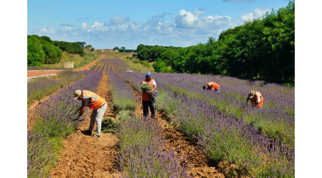 Sakarya Büyükşehir Belediyesi tarımsal üretim noktasında ürettiği projelerle şehre yön veriyor. Bazı projeler ise Türkiye’de hatta dünyada yerel yönetimler tarafından örnek alınıyor. Bunlardan en önemlisi ise Sakarya Botanik Vadisi oldu. Kentin kuzey bölgesini boydan boya kapsayan aralıksız 3 farklı ilçeyi kapsayan tıbbi aromatik bitki üretim alanında hasat devam ediyor. Türkiye’nin en uzun alanına kurulmuş olan şifa bahçesi olan Sakarya Botanik Vadisi’nden alınan ürünler ülkede ve hatta dünya genelinde vatandaşlara sunuluyor.VADİDE RENGARENK BİR HASAT VARBüyükşehir iştirakleri SERA A.Ş ve FİDAN A.Ş’nin güçlü ve profesyonel personel ekiplerince yönetilen üretim sahasında verim her geçen gün artıyor. Ekilen kuşburnu, lavanta, biberiye, adaçayı, ahududu, böğürtlen, limon otu, gül, kedi otu, defne, akasya ve ıhlamur gibi aromatik bitkiler yine Büyükşehir eliyle şifalı ürünlere dönüştürülüyor. Üretim alanlarında lavanta, kuşburnu, biberiye, defne uçucu yağları, adaçayı, ıhlamur çayları ve kekik baharatı gibi ürünler hazırlanıyor. Aromatik bitki üretim sahasında ürün yelpazesi her geçen gün genişliyor ve ürün çeşitliliği artıyor.TÜRKİYE’NİN HER YERİNDEN ZİYARETÇİAynı zamanda bu vadi Sakarya’da arıcılık faaliyetlerine de can suyu oluyor. Polen toplamak için kovandan ayrılar yüzbinlerce arı şifa bahçesinde rengârenk çiçeklere konuyor. Vadi içinde son günlerde adeta renk cümbüşü yaşanıyor. Lavantalar, akasyalar, güllerin görüntüsü görenleri adeta büyülüyor. Vadi ayrıca güzelliğiyle fotoğrafçılar için de adeta bir plato olarak kullanılıyor. Doğanın merkezi olan bu noktada birbirinden harika fotoğraflar çekiliyor. Sakarya’dan ve Türkiye’nin dört bir yanından vatandaşlar özellikle lavanta bahçelerine geliyor, burada kendi elleriyle lavanta toplama deneyimi yaşıyorlar. Vadiye hayran kalan turistler şifa bahçesinde hatıra fotoğrafı çekiliyor.“BEREKETLİ TOPRAKLARDAN DÜNYAYA ŞİFA DAĞITIYORUZ”Başkan Ekrem Yüce, Allah’ın Sakarya’ya bahşettiği mucizeleri Türkiye’ye ve hatta dünyaya sunduklarını ifade ederek, “Şifa dağıttığımız, doğanın mucizelerini aldığımız vadimizdeki renk cümbüşü herkesi hayran bırakıyor. Tüm vatandaşlarımız misafirimiz olup bu güzelliği kendisi görebilir. Bu vadiden Türkiye’ye şifa dağıtıyoruz. İçinde onlarca çeşit aromatik bitki yer alıyor. Allah’ın bahşettiği bu doğal mucizeleri dünyanın en nadide topraklarından alıp vatandaşlarımızın derdine deva olarak sunuyoruz. Çıkarılan bu bitkilerden kendi el emeğimizle uçucu şifalı yağlar üretiyoruz. Şu görmüş olduğunuz alan Türkiye’nin kurulmuş en uzun şifalı bahçesidir. 60 kilometrelik alanda hasadımız, üretim hacmimiz her geçen gün genişliyor. Oluşturduğumuz ürünler ve imal ettiğimiz doğal malzemelerle şu anda dünyanın dört bir yanından müşteri buluyoruz. Şehrimiz tarımsal hamlemizle kazanmaya, ülke ve Sakarya ekonomisine fayda sağlamaya devam edecek” dedi.